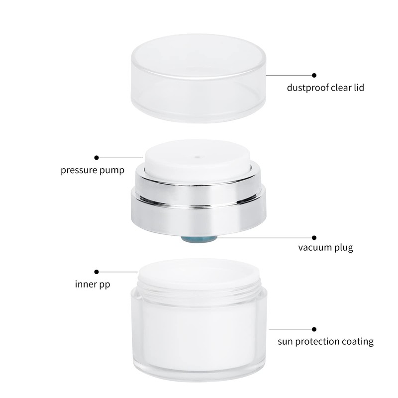 - 【VACUUM STOPPER】 Airless pump jar can effectively isolate air, and there is no need to open the cover when using it, squeeze up and down to lift the cream, which reduces the time of air contact with moisturizers and creams, and is more hygienic