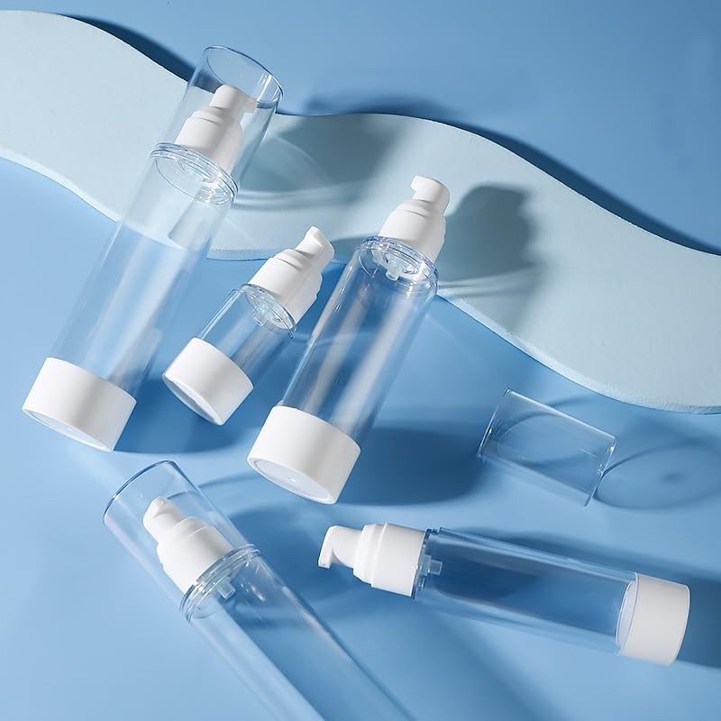 Airless Pump Bottle, 4.6 inch Vacuum Dispenser, Transparent Cap, Refillable Cosmetic Container