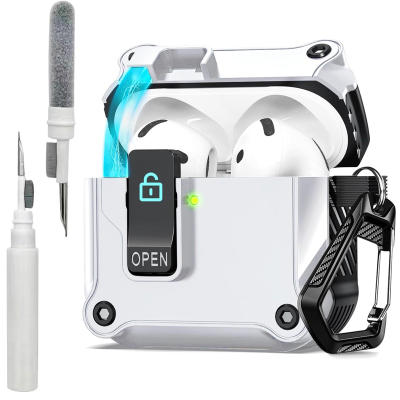 AirPods 4th Generation Case with Cleaning Kit and Keychain, Auto-Open AirPods 4 Case with Secure Lock, Compatible with AirPods 4th Generation (2024), Powerful Drop Protection (White)