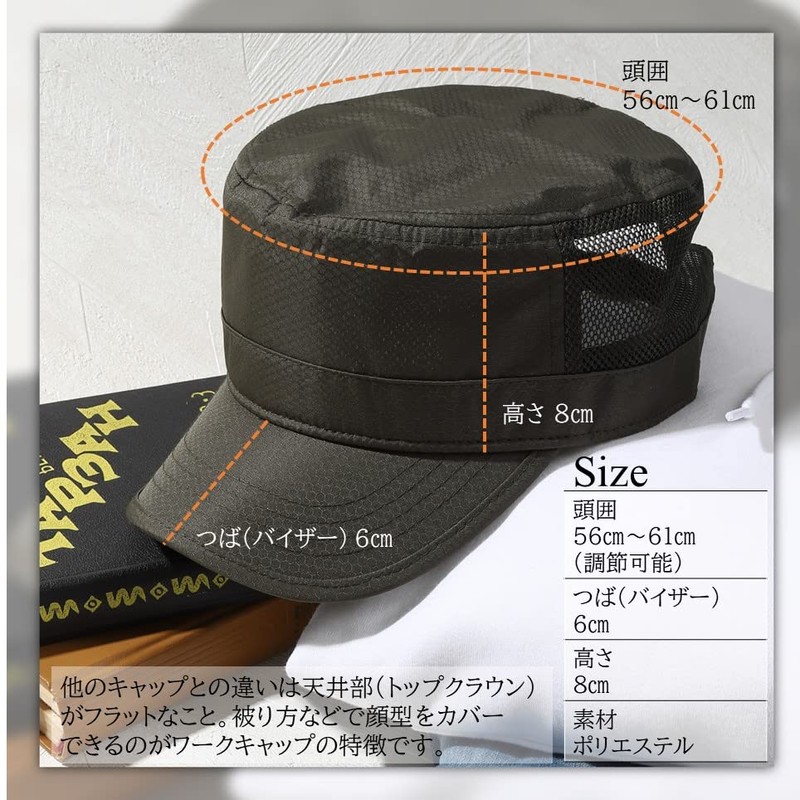 - Material Features: Many materials used for work caps are denim, cotton, and wool, but this product is made of polyester and has been processed to reduce stuffiness
