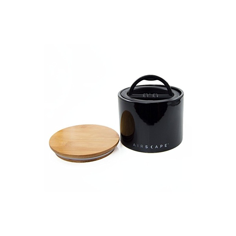 Airscape Ceramic Coffee and Food Storage Canister, 4" Small - Patented Airtight Inner Lid Releases CO2 and Preserves Food Freshness - Glazed Ceramic with Bamboo Top - Obsidian Black