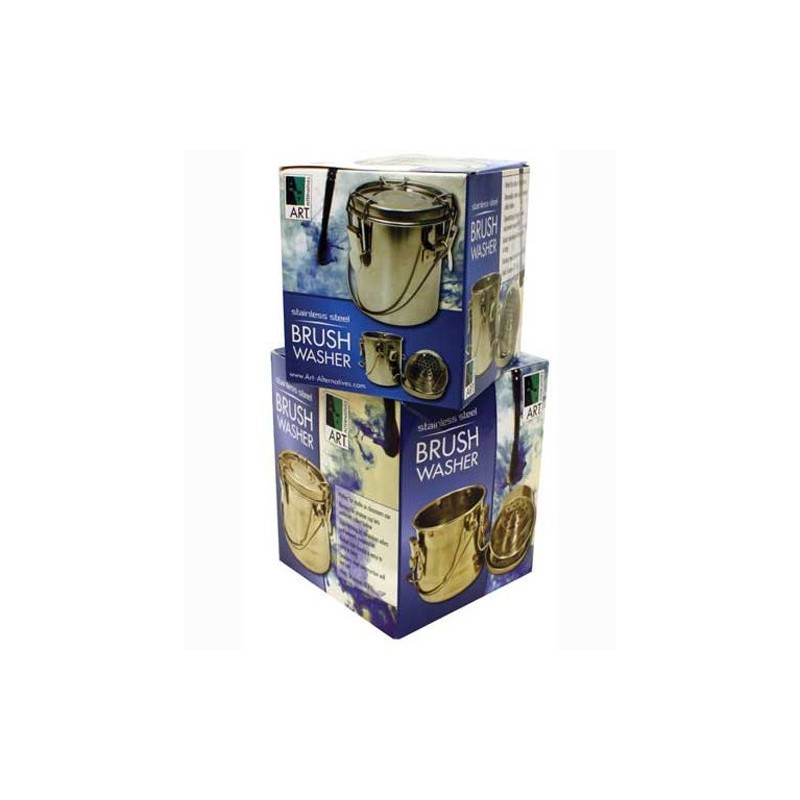 The Airtight Brush Washer design features double latching so the lid locks securely, forming an airtight seal. There is no spilling, evaporation, or odor. The washer also has a remover strainer cup which collects sediment at the bottom. Very convenient for cleaning acrylic and oil brushes.