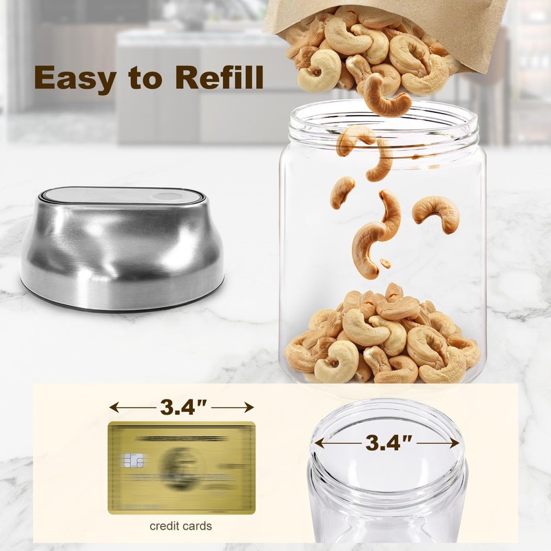 - 📝One-Handed Convenience, Easy Operation:Designed with your convenience in mind, these storage jars feature user-friendly lids that allow one-handed opening and closing. Whether you're busy in the kitchen or have your hands full, you can quickly and efficiently access your stored items