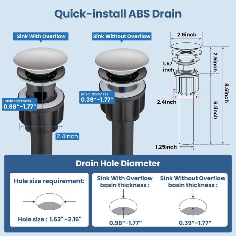 - [Installation]:High quality ABS plastic pop up drain and water lines are included.The tall bathroom faucet packaging includes standard US 3/8” hoses, Come with installation instruction.