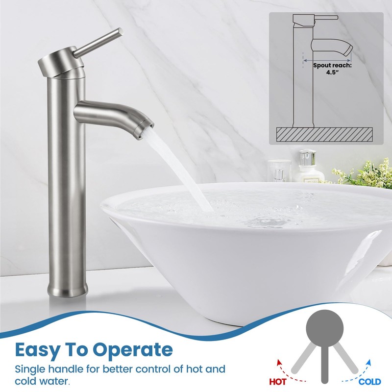 Plus, with a lifetime support, you can trust that this vessel sink faucet brushed nickel will provide reliable function for years to come. So upgrade your bathroom with the Airuida single hole bowl sink faucet tall and elevate your daily routine with ease.