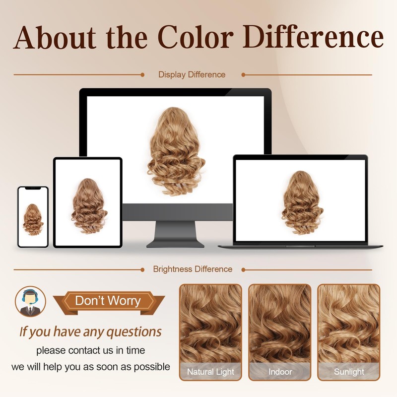 - 【Kind Tip】After receiving the short curly dark brown ponytail extension,take out the ponytails,gently shake it and comb it with your fingers to give it a natural and layered look.