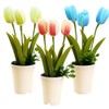 Aisamco 3 Pack Artificial Potted Flowers Small Faux Plants in White Pot Mini Artificial Tulips Potted Flower for Bathroom Home Office Desk Table Shelf Decoration Indoor
