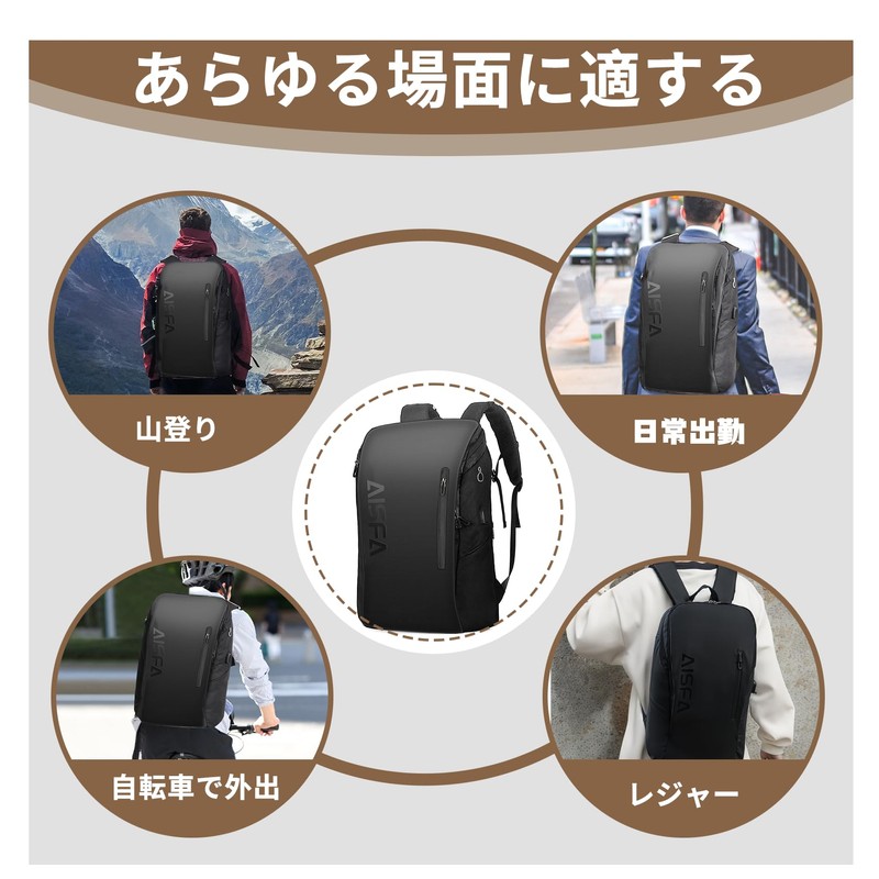 AISFA Men's Large Capacity Sports Rucksack, Disaster Preparedness, Backpack, 17-inch PC, Business, Laptop Bag, Large Capacity, USB Charging Function, 9.8 gal (30 L), For Outdoor Activities, Mountain