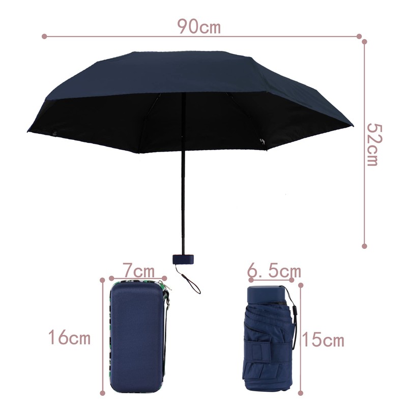 - Compact & Portable: Umbrella: 15*6.5cm(L*W); Case:16*7cm(L*W); which is fitting in your backpack, makeup bag or handbag, even in your pockets! Easy to carry.