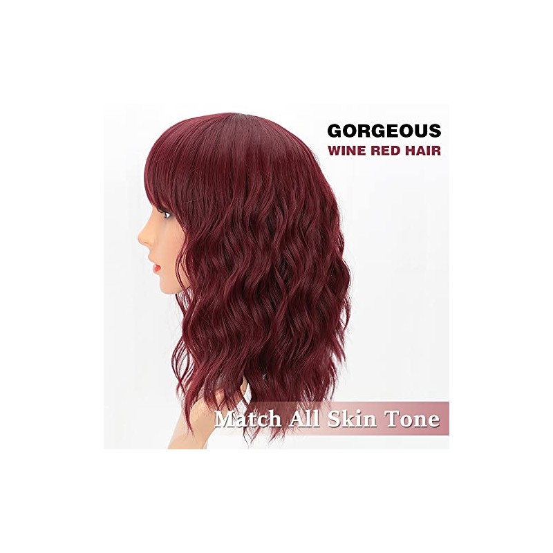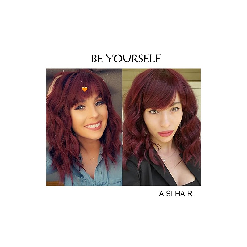 AISI HAIR Synthetic Curly Bob Wig with Bangs Short Bob Wavy Hair Wigs Wine Red Color Wigs for Women Bob Style Synthetic Heat Resistant Bob Wigs