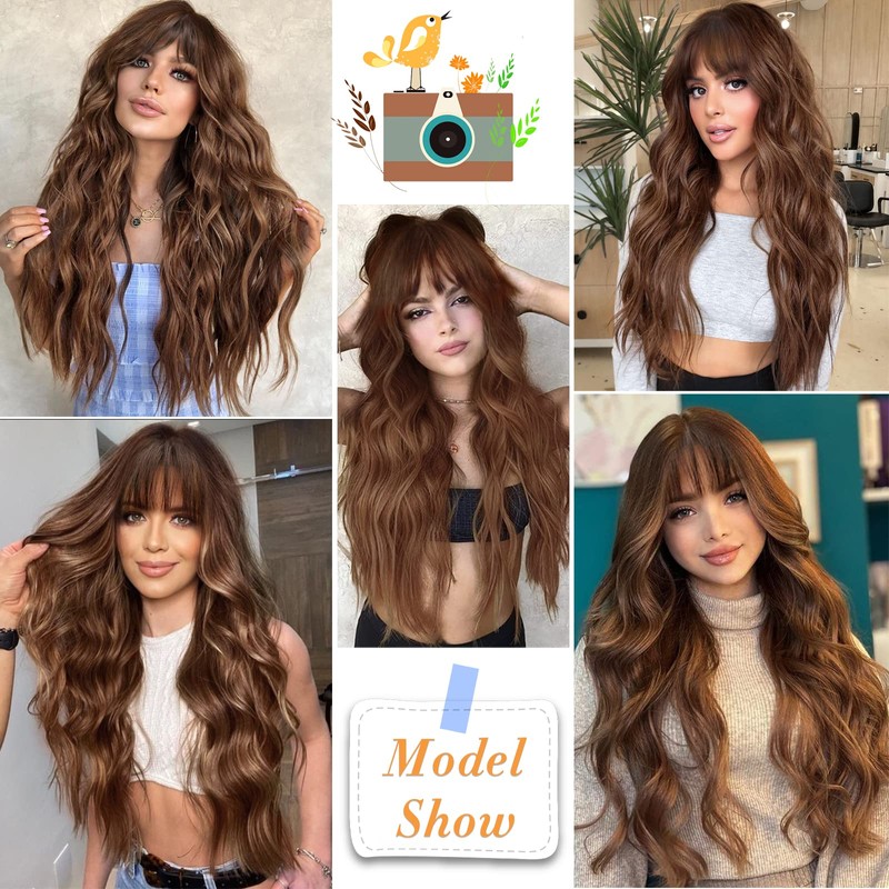 - ❤【Beautiful Colors & Popular Styles】This auburn wig is deep and warm, and it is also the most popular color in barbershops recently. Timeless beach wave curls with special bangs designed to make wigs sweeter and more natural. Bring it and you're sure to get more praise and confidence.
