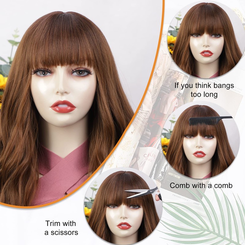 - ❤【Free-Trimmed Bangs】 This wig with bangs is made of soft material. So you don't have to worry about whether the bangs will last long, because you can trim them as you like. You can also curl it with the hair roller that we send, and you will easily get a natural look. At the same time, your beautiful hair accessories: ribbons, bandanas, hairpins, hats can be used to match, and every day you can get a new hairstyle.