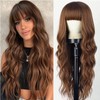 AISI QUEENS Auburn Wig with Bangs Long Wavy Ombre Auburn Wigs for Women Hair Replacement Wigs Heat Resistant Synthetic Wig with Dark Root for Daily Party Use