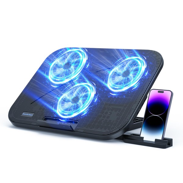 Aisunkutech Laptop Cooling Pad, Laptop Cooler 3 Fans for 12-17 Inch Laptops, Height Adjustable Laptop Cooling Stand with 2 USB Port & Phone Holder