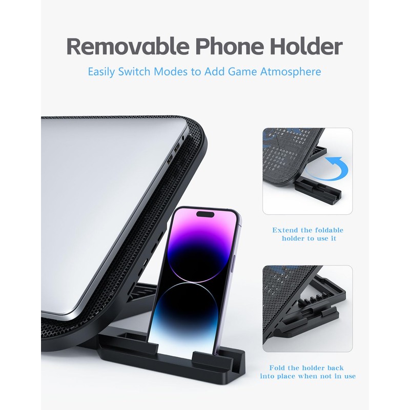 - 【Durable Material】The body of this laptop fan cooling pad is made of durable ABS material, which is heat-resistant and wear-resistant, and the mask is made of mesh stainless steel. It is strong and provides very good heat dissipation performance. It is also equipped with a phone holder.