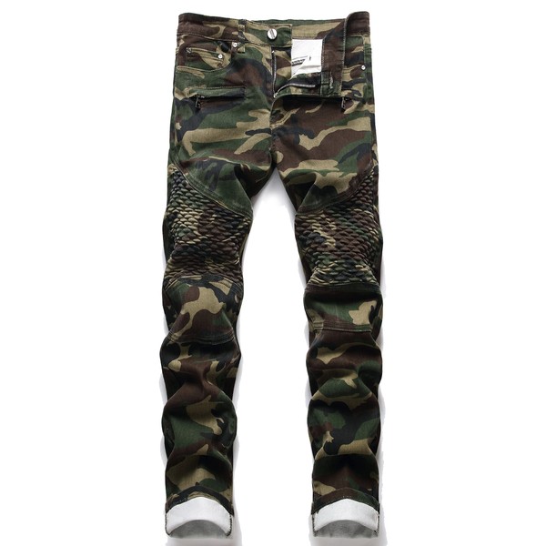 AITITIA Men's Regular Fit Biker Jeans (1544 Camo, 34)