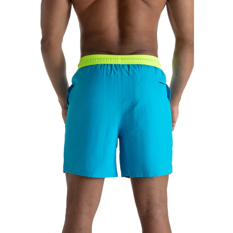 AITLGINVEN Mens Fashion Swim Trunks Beach Shorts Quick Dry Swimwear with Zipper Pocket Green&Light Blue S