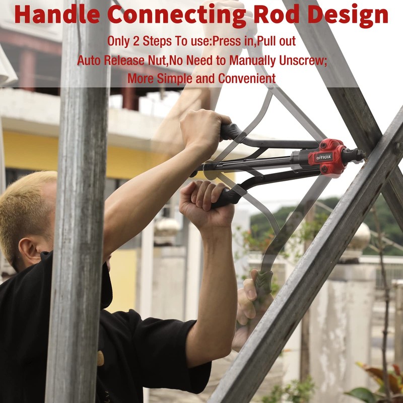 - Labor-saving & Durable:The 16-inch carbon steel arm is heat-treated and has anti-corrosion and anti-deformation functions. It can maximize leverage and is more powerful and labor-saving than ordinary 14-inch rivet nut tools. Non-slip rubber handle makes you more comfortable to use.
