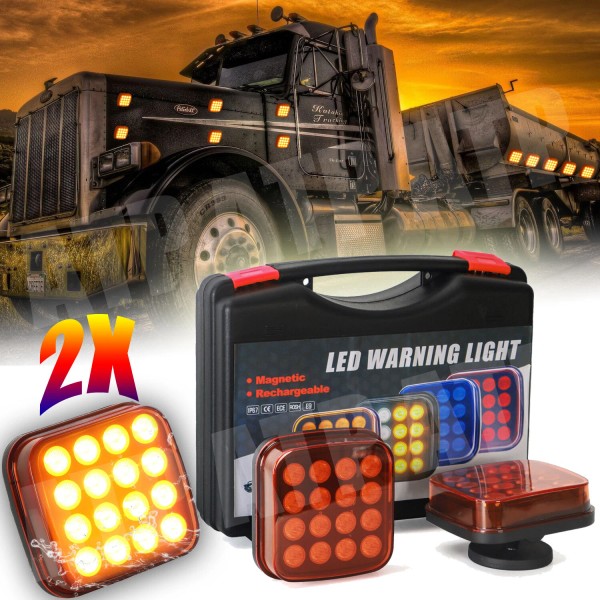 AIWARGOD 2pcs Wireless Magnetic LED Truck Tail Light Trailer Rear Lights Signal Warning