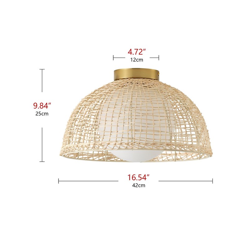 - 【Perfect Size & Versatile Placement】This rattan ceiling light measuring 16.54 inches in width and 9.8 inches in height, this flush mount light is ideal for low to medium-height ceilings. Install it in bedrooms, kitchens, hallways, entryways, dining rooms, bathrooms, or closets for functional and decorative lighting.