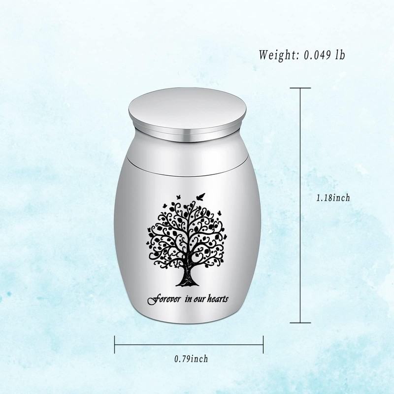 - Unique Design:The urn is available in Tree of life/heart/Rose flower/Wings with engraving on the front pattern.The back can be customized. This mini urn is a one-of-a-kind memorial urn which can be shared with your children, grandchildren or others Important people share. Souvenir cremation urns are also a popular way to deliver small amounts of ashes to distribution sites that are significant to your loved one's life
