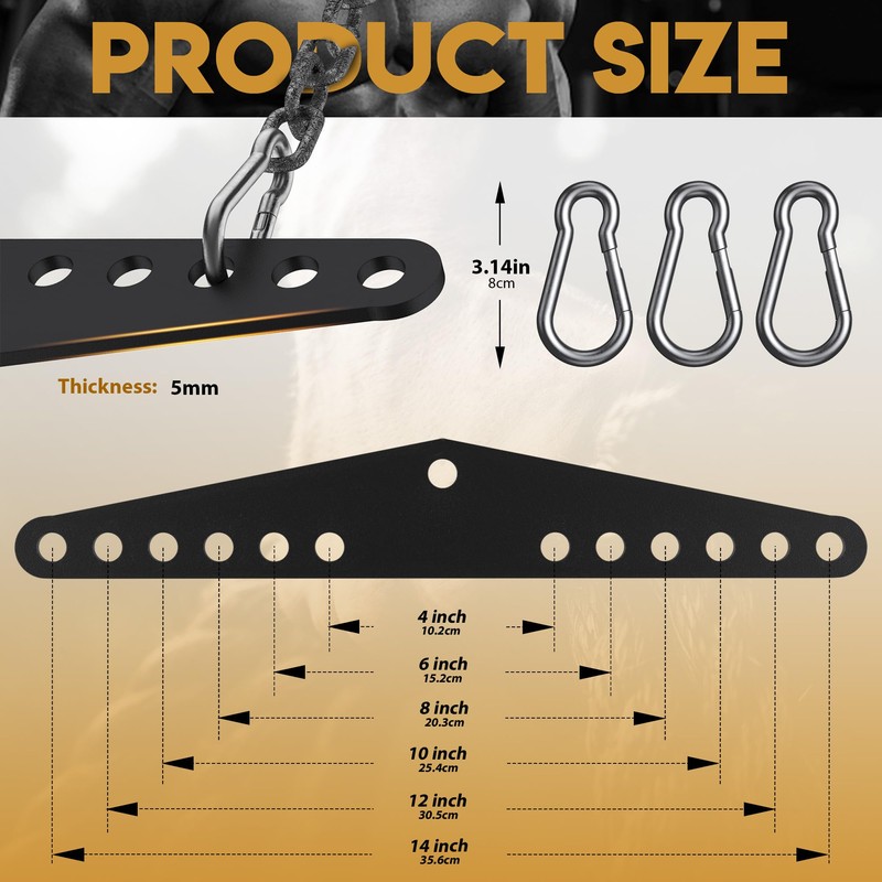 - 【6 Levels of Stretch Width Adjustment】 Double to Single Pulley Adaptor Plate features a 13-hole design with 6 levels of stretch width adjustment, which can be used with D-handle, V-handle, lateral pull down bar, extension bar, etc. to work latissimus dorsi, triceps, biceps, shoulders, back, arms and other muscles. Double-handle or Single-handle training can be realized by placing the lat pull down machine attachment up or down