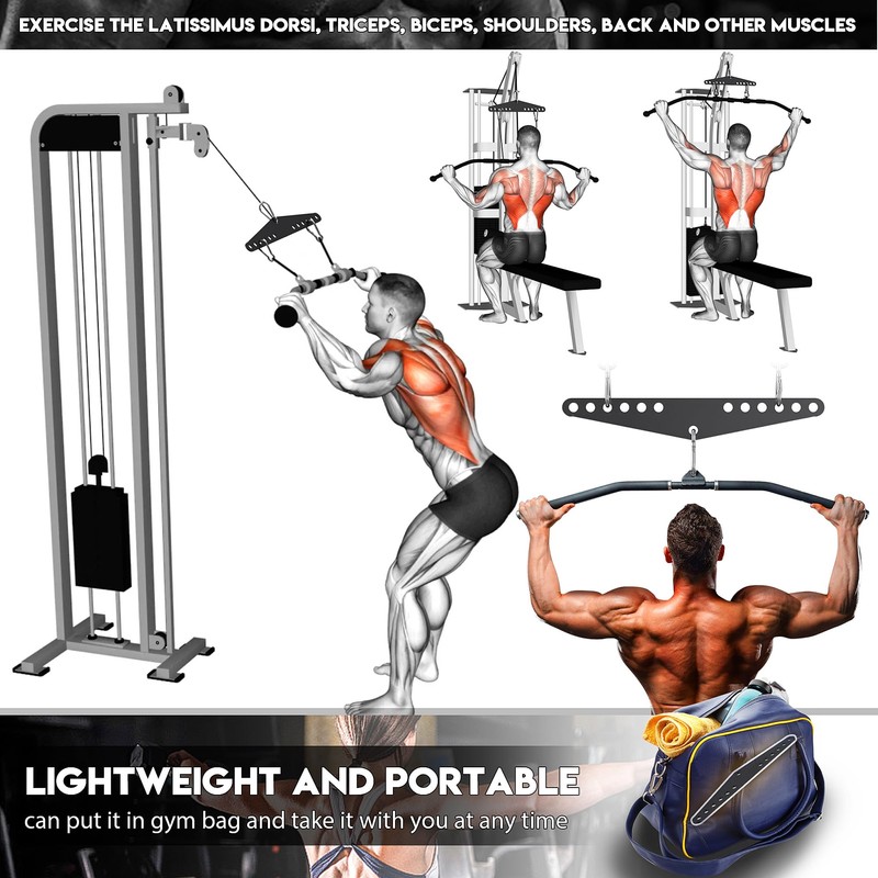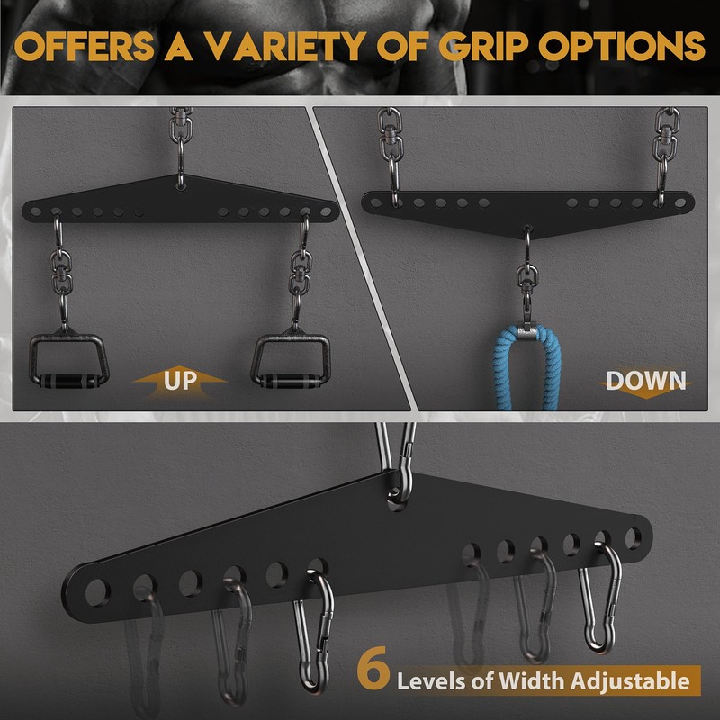 - [PACKAGE INCLUDED] The multi-grip lat pull down bar for home gym kit includes spreader plate gym x1, Carabiner ciip x3