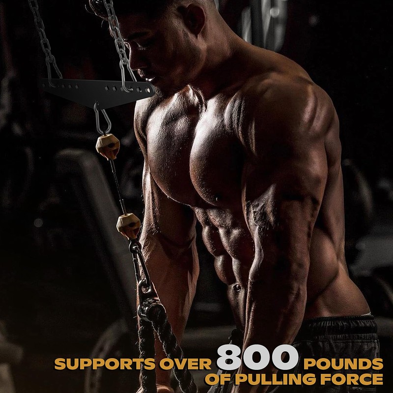 - 【Sturdy and Durable】 Multi grip lat pulldown bar are made of high-density carbon steel, 5mm thickness, more sturdy and able to support more than 800 pounds of pulling force. The surface of the pulley adaptor plate is plated with black powder coating, effectively preventing rust and corrosion