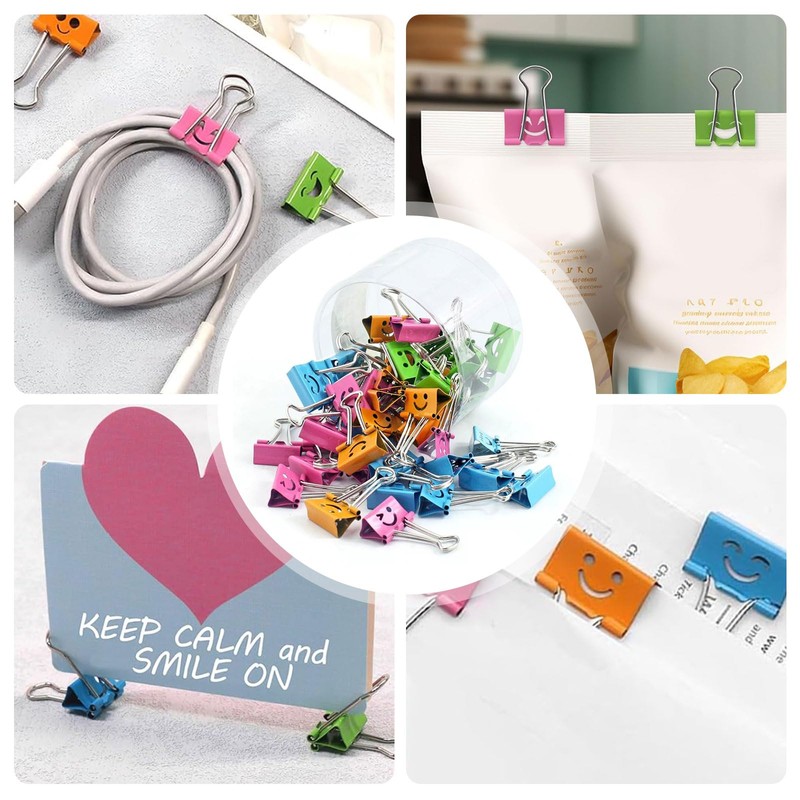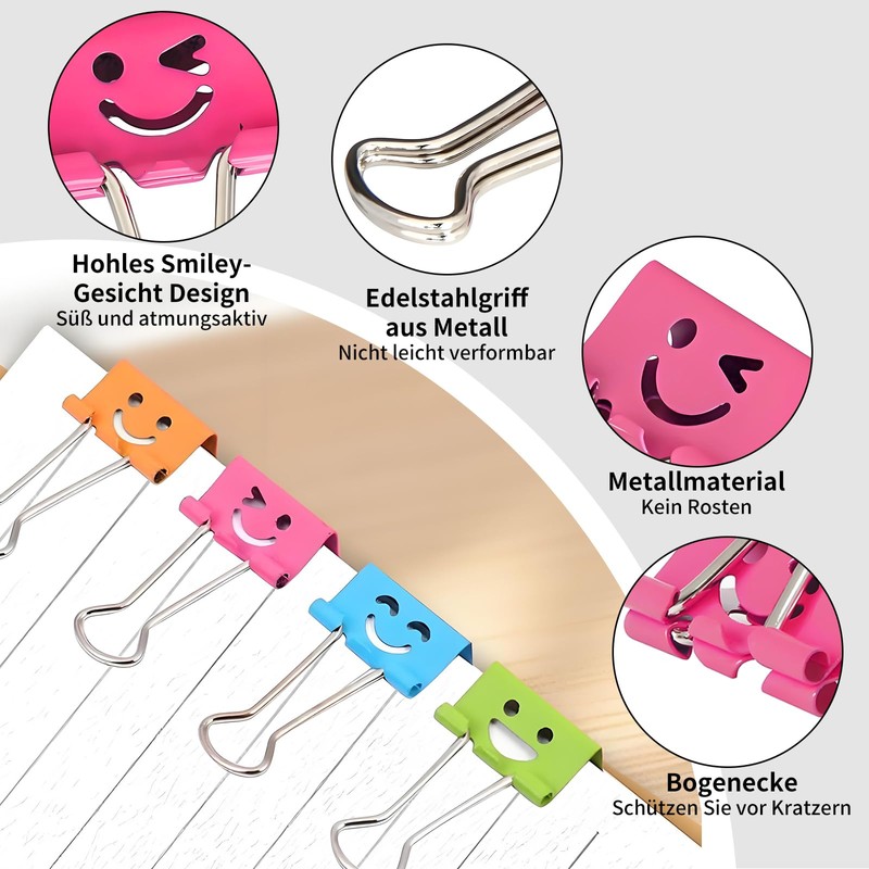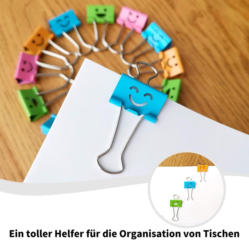 - Colourful designs & fun at work: the clips come in cheerful colours and smiley faces that bring a smile to the face. These foldback clips are not only practical, but also a fun accessory for your office or home.