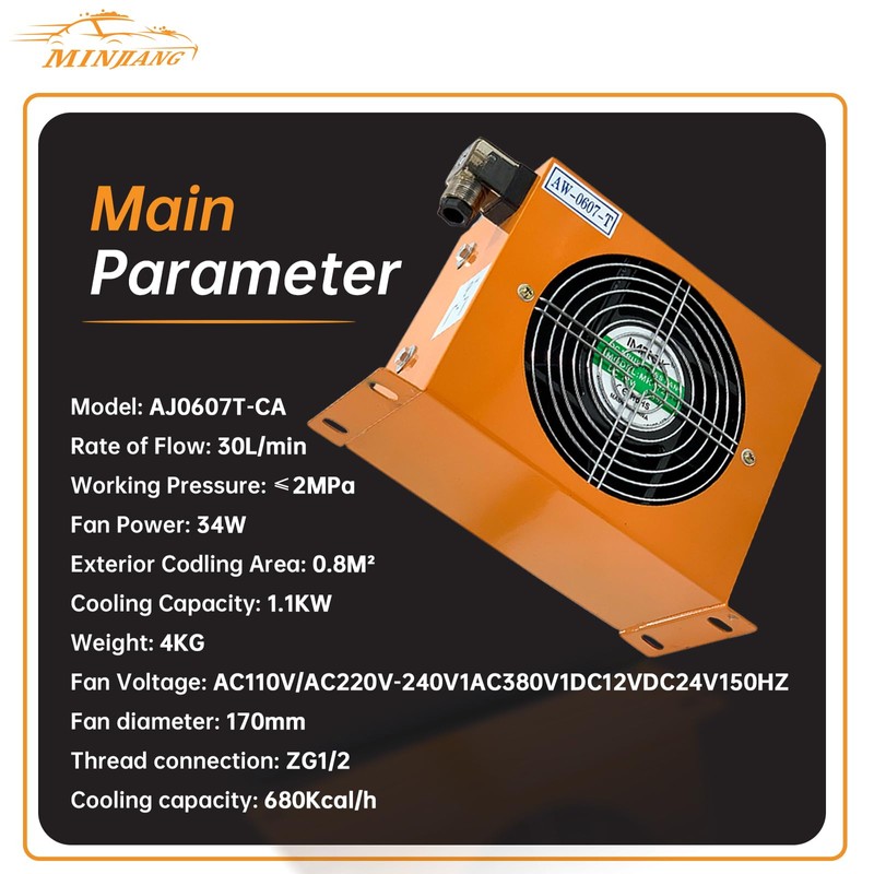 - How to Work - The AJ0607T-CA air cooler uses air as the cooling source, and dissipates heat under the operation of the fan to obtain a low-cost, high-efficiency cooling effect. It can be used for system oil recirculation cooling, oil discharge cooling and independent circuit cooling
