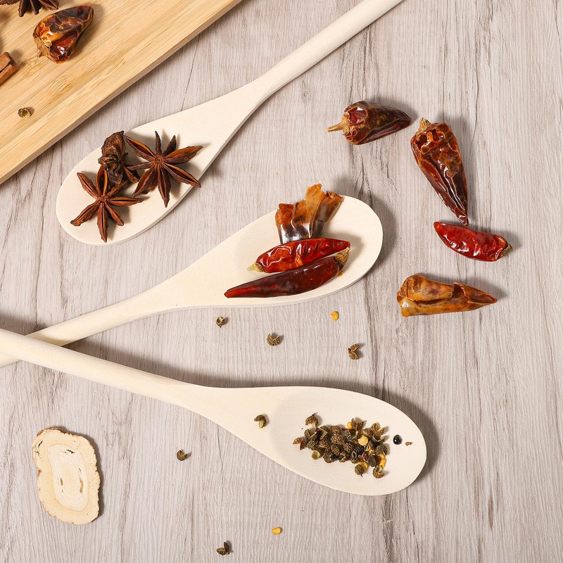 - 【Premium Material】Our 12-inch wooden spoons are crafted from natural maple wood, sustainably sourced and hand-polished to a smooth, splinter-free finish.
