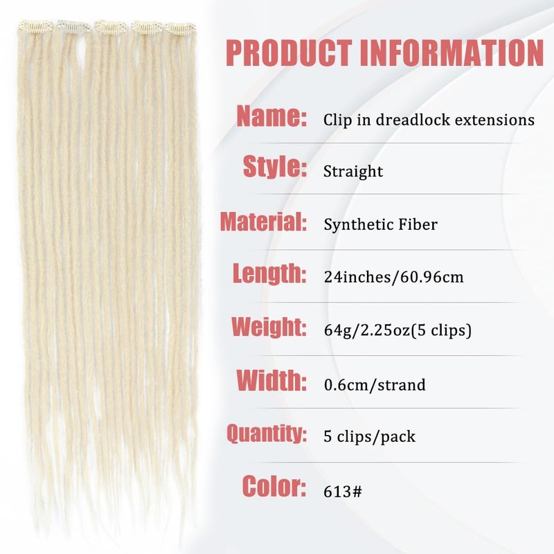 - 【Material】The 24inches clip in dreadlock extensions is made of synthetic fiber.