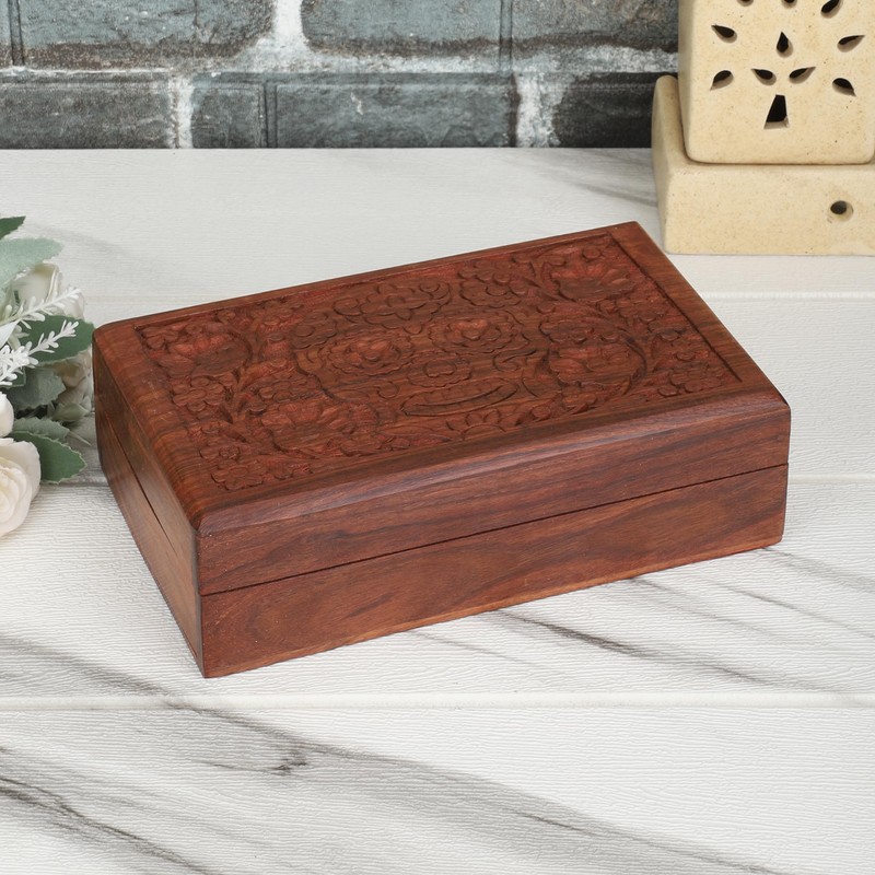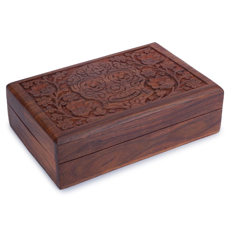 - Sheesham wood construction: Made of high quality sheesham wood, this jewellery storage box is characterised by exceptional durability and natural beauty. Sheesham wood, also called Indian Rosewood, is known for its rich grain and warm tones. The natural variations of the wood give the box a unique character and make it a gorgeous piece of home decor.