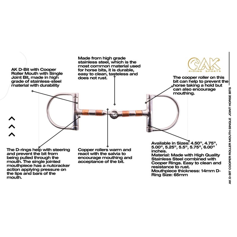 - The cooper roller on this bit can help to prevent the horse taking a hold but can also encourage mouthing. The D-rings help with steering and prevent the bit from being pulled through the mouth. The single jointed mouthpiece has a nutcracker action applying pressure on the lips and bars of the mouth.