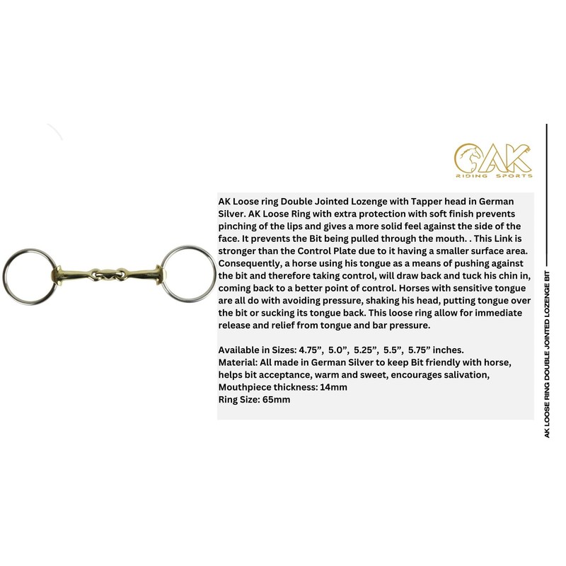 - AK Loose ring Double Jointed Lozenge with Tapper head in German Silver. AK Loose Ring with extra protection with soft finish prevents pinching of the lips and gives a more solid feel against the side of the face. It prevents the Bit being pulled through the mouth. .