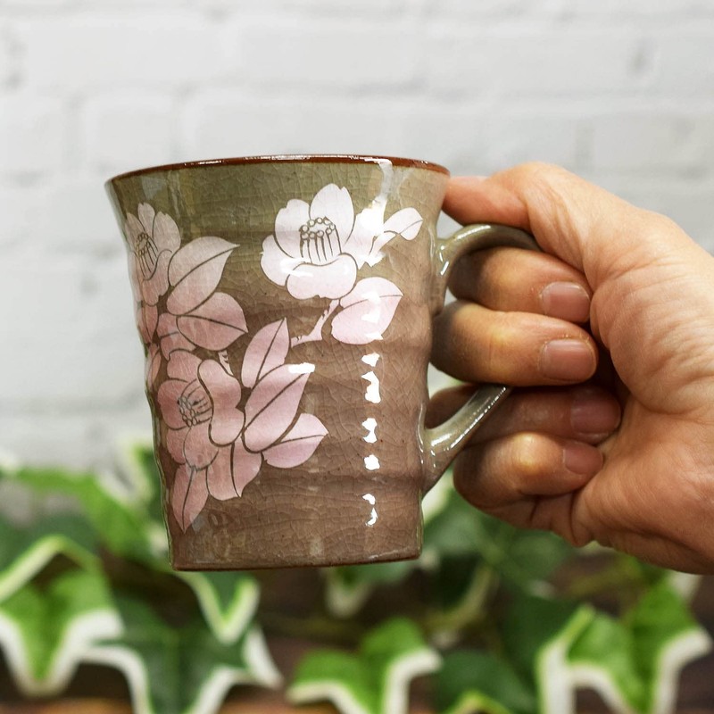 九谷焼 陶器 ペア マグカップ 銀彩山茶花 AK4-0955