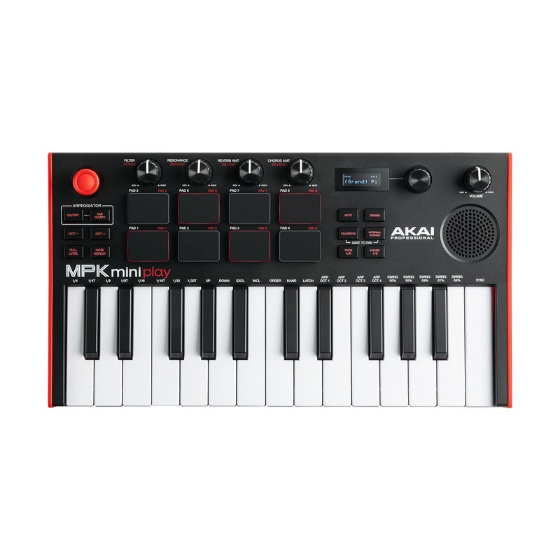 With Class Compliant, plug-and-play capability, MPK mini Play doubles as a powerful MIDI controller and instantly connects to your favorite DAW for immediate music production duties. 4 assignable rotary encoder knobs offer versatile control of MIDI parameters like pan or automation for super-precise editing. With its sturdy construction and build, MPK mini Play is ready to travel securely alongside any favorite music production items in backpacks or bags. With battery-operated performance at 14+ hours, MPK mini Play is ready to play wherever and whenever you are. The upgraded built-in speaker delivers increased output and added low-end response driving the 128+ onboard drum and keyboard sounds. The MPK mini Play comes bundled with MPC Beats, the powerful music-making and recording desktop software DAW for Mac and PC, based on the iconic MPC hardware. This DAW features a full array of musical instrument plugins, effect plugins, and audio and drum samples ready for your next hit production. In addition to MPC Beats, MPK mini Play also includes multiple world-class plugin instruments from award-winning sound design company AIR Music Technology. Available in both AU and VST are Hybrid 3 - a powerful polyphonic analog synth, Mini Grand - an acoustic piano instrument, and Velvet - a vintage electric piano instrument.