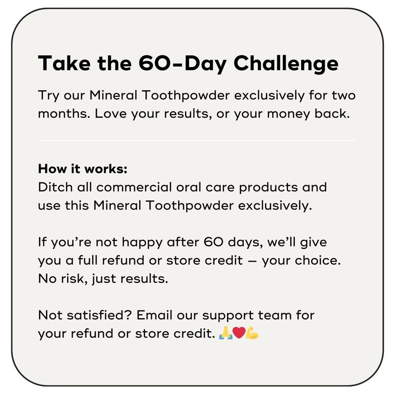Our Refillable Compostable Toothpowder System™. Zero waste & plastic-free. Get our nourishing Mineral Toothpowder delivered in earth-friendly, compostable packets. Simply add the refill powder to your original glass jar & compost the packet.