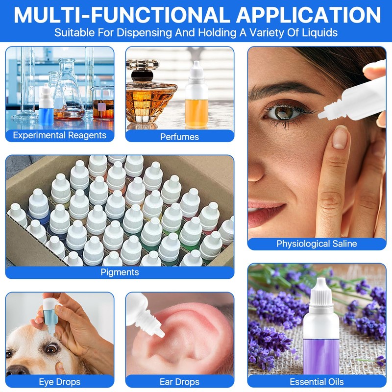 - MULTIFUNCTIONAL APPLICATIONS: 20 ml squeezable dropper bottles are suitable for dispensing and holding a variety of liquids, such as eye drops, ear drops, ink, glue, essential oils, saline, flavors and more. Whether for home use or business use, it can meet your needs.