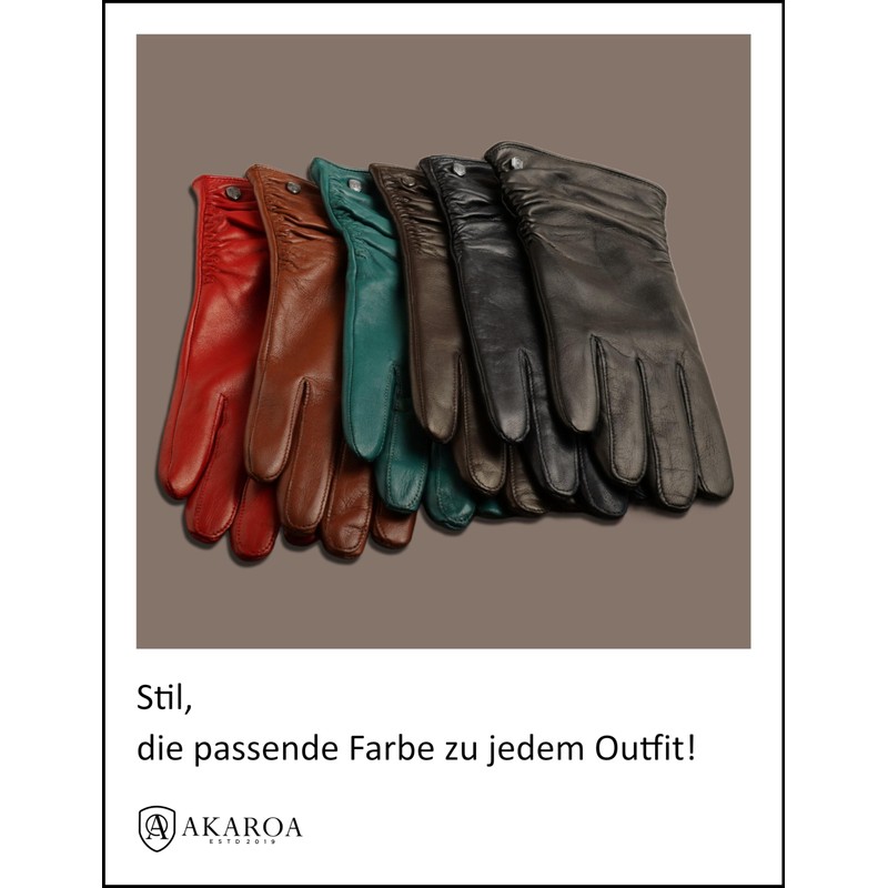 Akaroa stands for high-quality, elegant and innovative products of the highest quality. Here, the craftsmanship of experienced workers comes together with the best materials, so that you can enjoy visually as well as functionally convincing products. The material of our gloves has excellent self-cleaning properties due to its natural texture. Even with heavy dirt, it is sufficient for you to simply clean the leather gloves with a clean cloth and water. After wearing the winter gloves with touchscreen function, you can easily bring them back into shape by pulling on the fingertips and on the shaft and putting them neatly on top of each other.