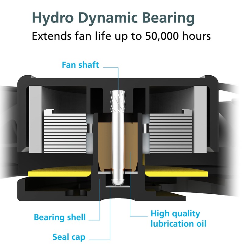 - Hydro Dynamic Bearing extends fan life up to 50, 000 hours