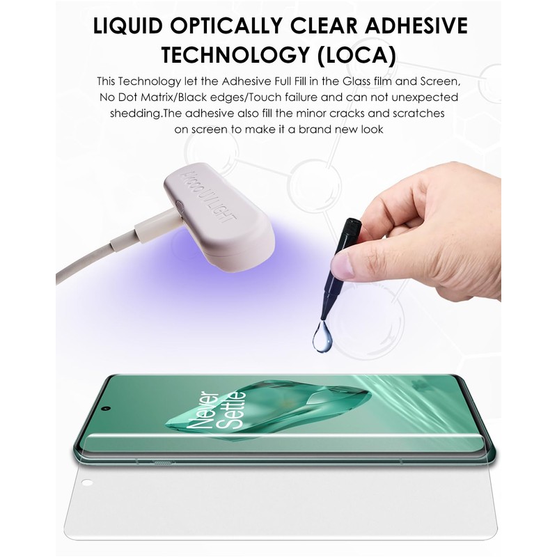 • [LOCA Technology] It is a full-screen adhesive tempered glass shield, not like the edge glue glass screenguard, it is no Dot Matrix/Black Borders/Touch Failure and will not Unexpected Shedding. Through UV curing, the UV tempered glass seamlessly adheres to the screen, providing you with a sensation of a non-existent protector. The liquid glue has the ability to fill in minor scratches and even some cracks on the screen, making it feel like a brand-new screen even after prolonged use.