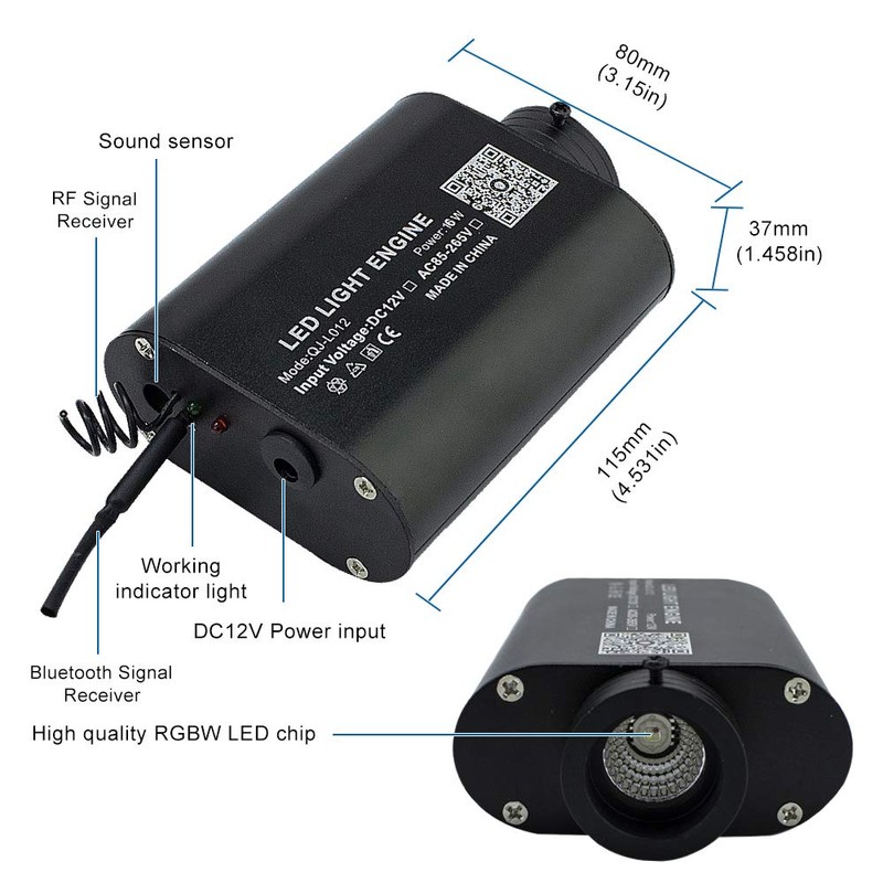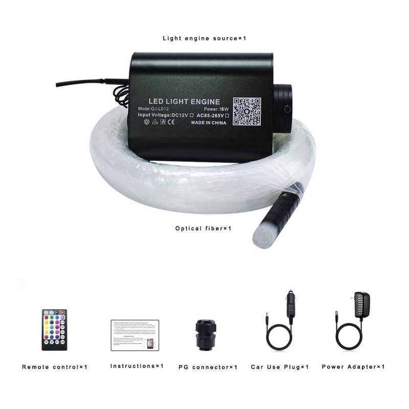 - 【SPECIFICATION】28key RF remote control. With 300pcs 6.5ft/2m end glow fiber optic cable in diameter 0.75mm(welcome to customize other size of fiber cable). With US power adapter and car use plug so that no need to connect wire and you can use for home or car as you like.