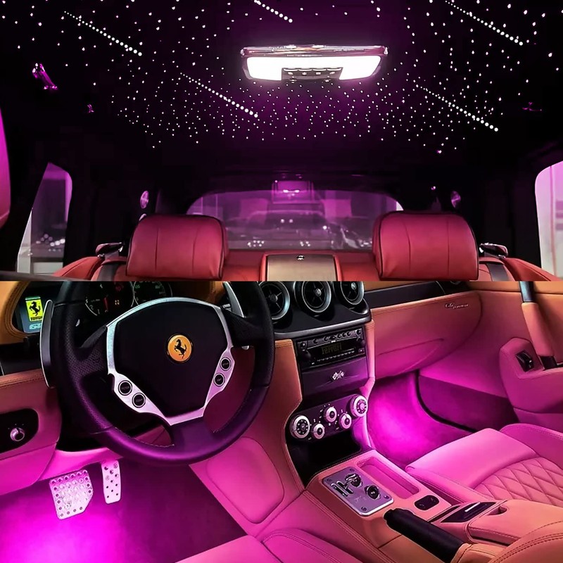 - 【Control 3-in-1 Light Kit with 1 Remote Control or 1 APP to Create Gorgeous Visual Effects and Wonderful Experience】No matter in music activated mode or dynamic color changing modes, 6W RGBW fiber optic star ceiling Light Kit will fully sync with RGBW under dash car LED lights. Bring a unique car interior experience like never before.