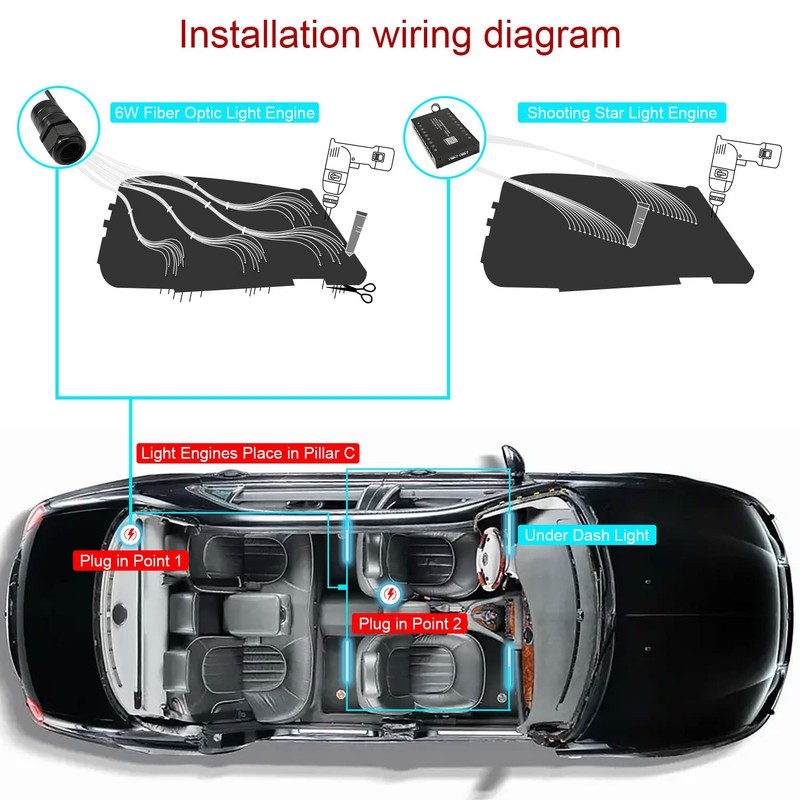 - 【Mini Size Light Engines and Comes with More Meteor Fiber Cables】Mini size of light engines that easy to be hidden in your car. 18 holes shooting star lgiht engine comes with total 108pcs of 1mm fiber optic cables.