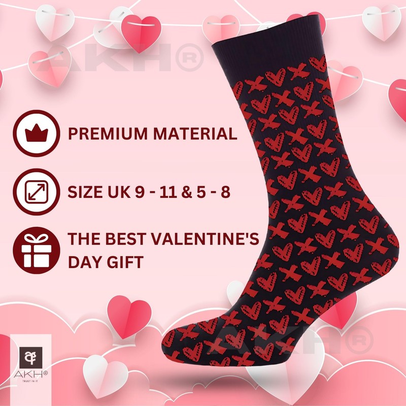 AKH® Valentine's Day Couple Socks | 2 Pairs | UK 5-8 & UK 9-11 Novelty Heart Print Cotton Socks for Couple | Comfortable and Festive Gift Idea for Valentine's Day