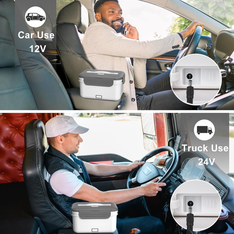 - 3-in-1 Electric Lunch Box --- Enjoy fresh and warm home-cooked food anywhere! This heated lunchboxes for adults can be used with 110V in your home or office, 12V in your car, and 24V in your truck. Whether you're a car/trucker driver always on the go looking to eat healthily or a construction/office worker in need of a hot meal, our heated lunch box is a perfect choice.