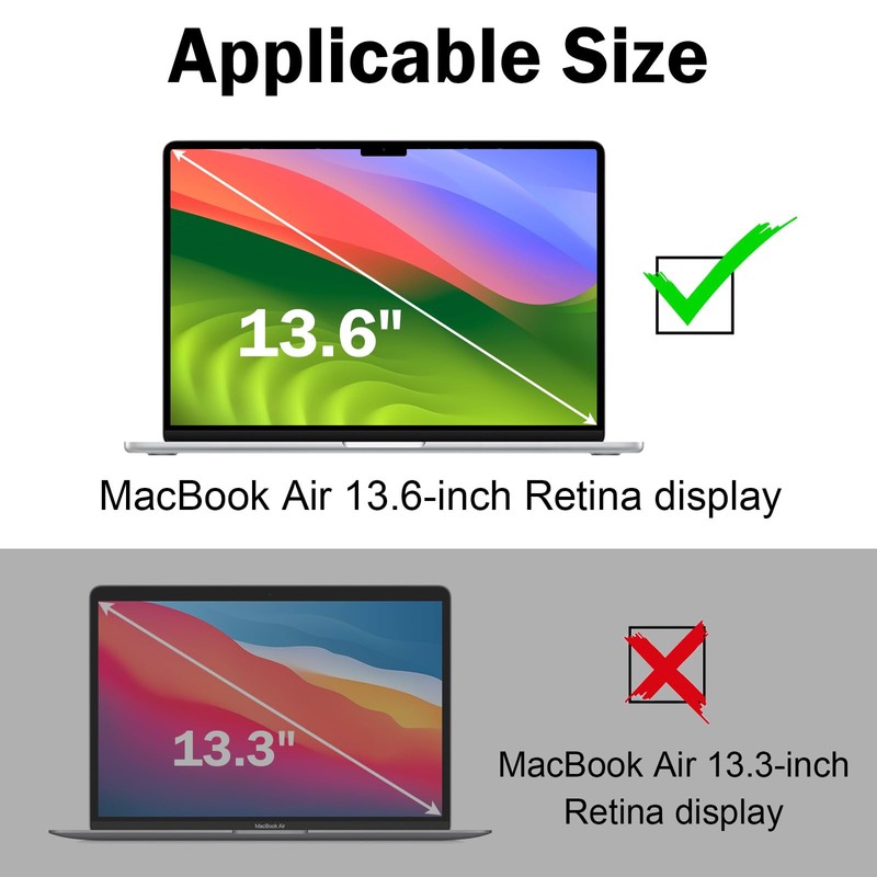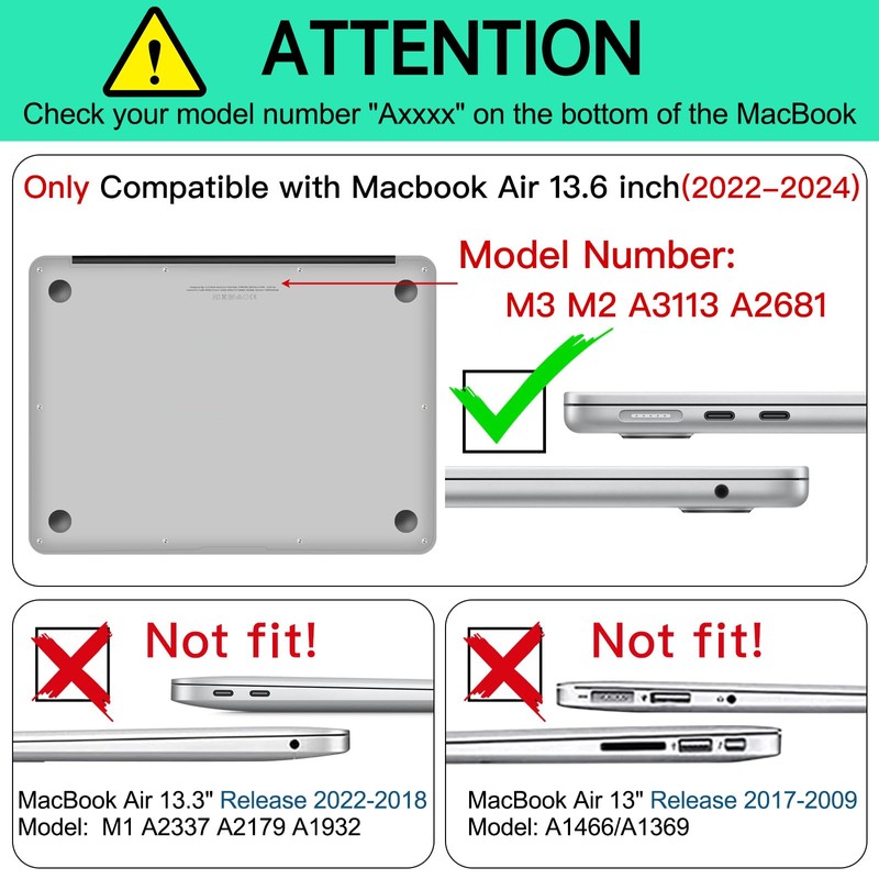 • 【Compatible Model】Only Compatible with MacBook Air 13.6 inch case 2025 2024 2023 2022 released (Model: A3113/A2681) with M2/M3 chip, Touch ID and Liquid Retina XDR Display. Please double check your laptop's model number "Axxxx"