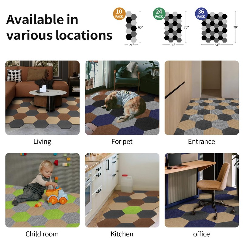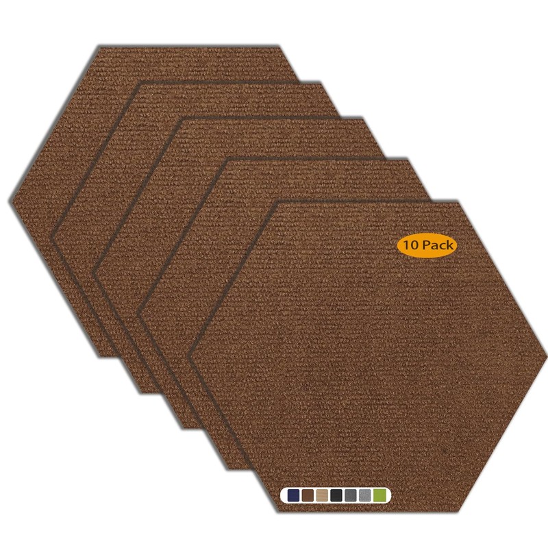 AKIVIDA Carpet Tiles Peel and Stick, 12”x 10” Non-Slip Self Adhesive Hexagon Carpet Floor Tile, 10Pcs DIY Reusable Waterproof Carpet for Gym Garage Living Bedroom