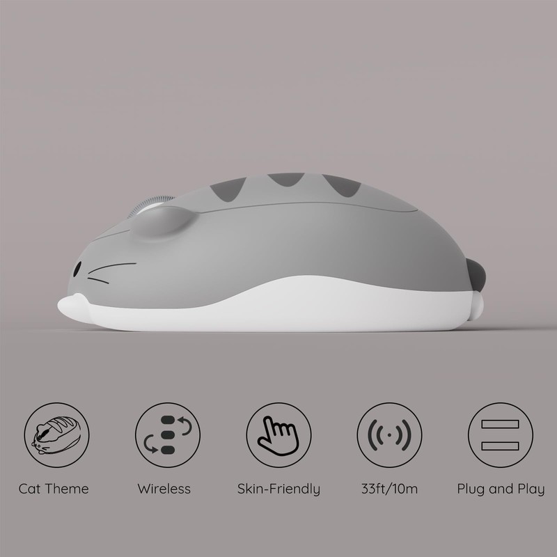 Akko Cat Theme Wireless Gaming Mouse, 2.4G GHz with a USB Receiver, Cute Optical Cordless Cartoon Mice for Computer/Laptop/Desktop/PC, Compatible with Mac/Win (Gray Mimo)